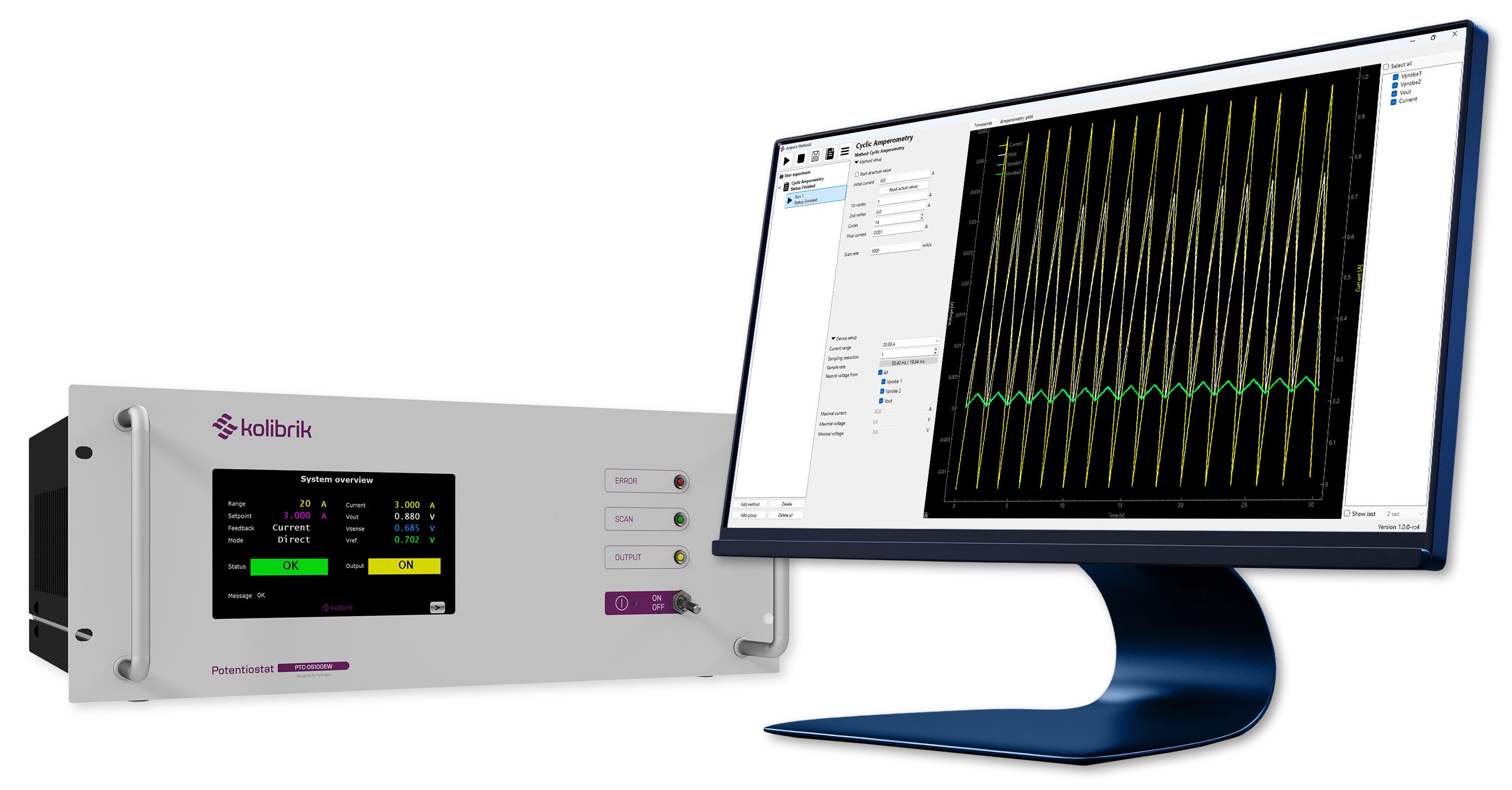 Los potenciostatos / galvanostato de Kolibrik proporcionan una amplia gama de mediciones hasta ±10 V and ±100 A.