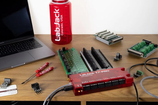 El dispositivo DAQ T8 de LabJack, el modelo más reciente de la serie T, es capaz de recolectar señales de prácticamente cualquier tipo de sensor. Con entradas amplificadas para instrumentación, ajustes de ganancia seleccionables por software, varias funciones de E/S digital y un terminal Modbus TCP, el modelo T8 es la plataforma DAQ multifuncional más versátil de LabJack.