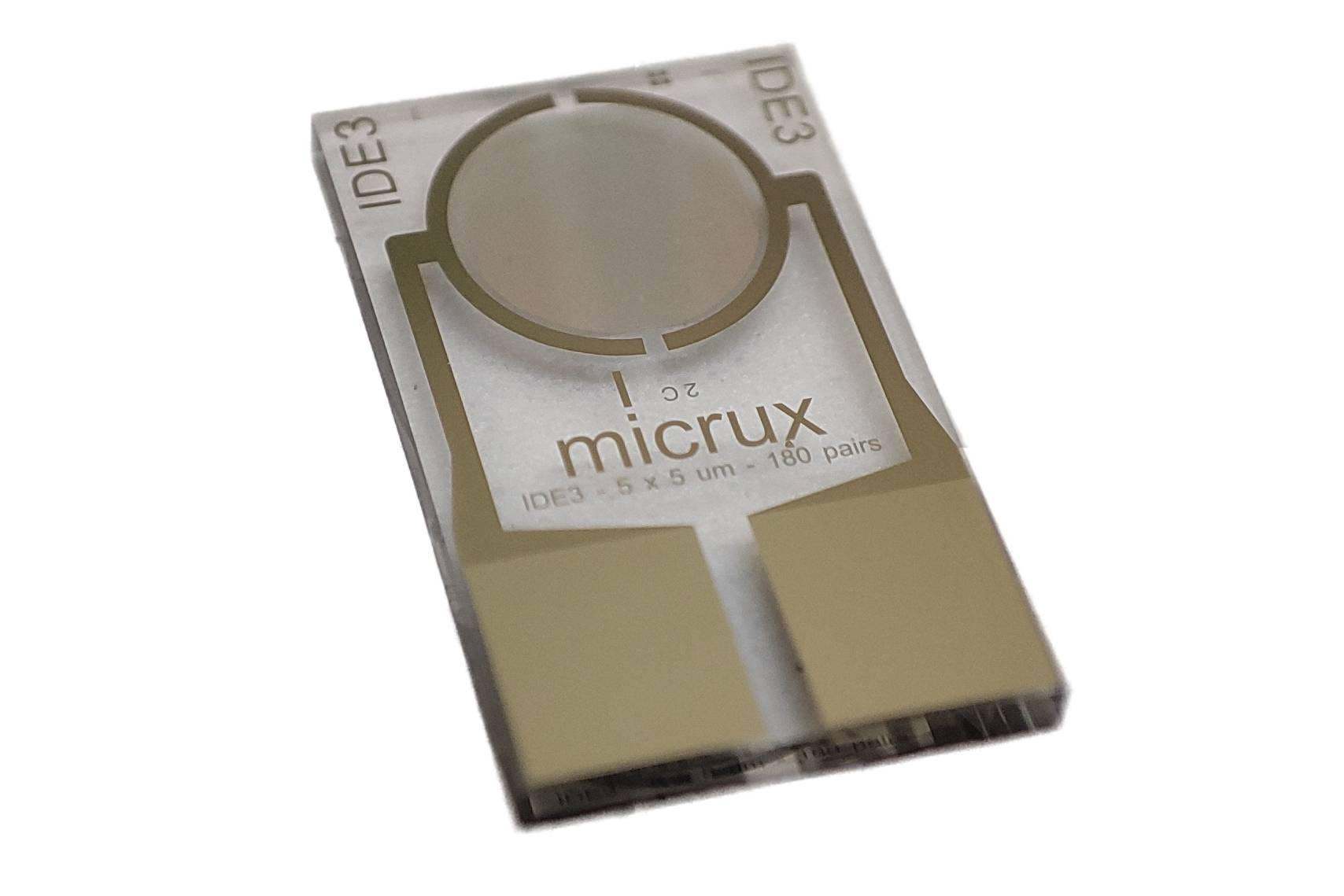 Los Electrodos InterDigitados (IDE) están fabricados mediante tecnologías de capa fina en un sustrato de vidrio.